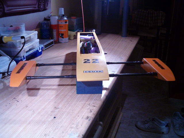 En cuanto a reformas de importancia, he cortado la varilla posterior de los patines que atravesaba el casco, con objeto de poder colocar bien las baterias, ahora tengo espacio mas que de sobra.