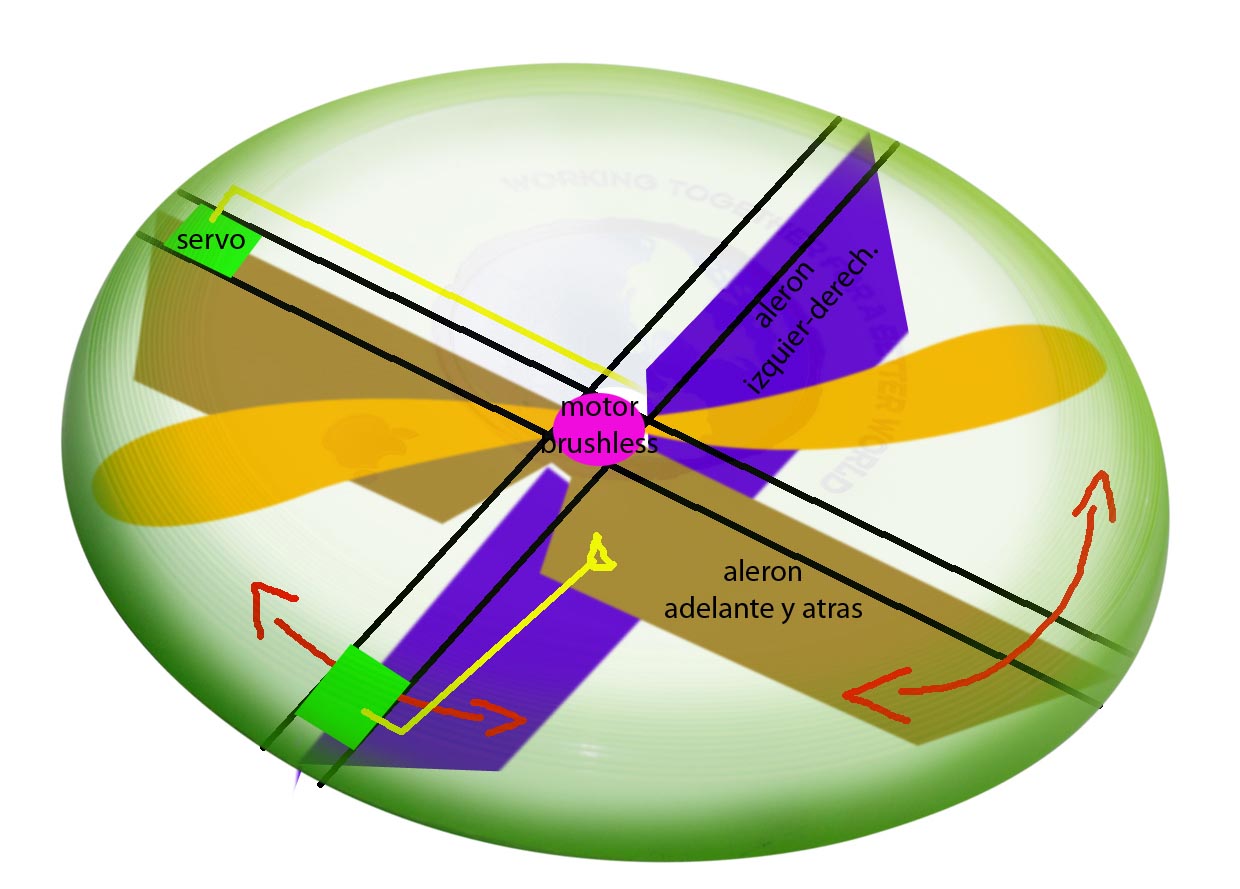 No se si ponerlo en helis o aqui...he pensado en hacerlo despues de ver un video de un tipo que intentaba hacer algo parecido. Es sencillo, un fresbee con un pedazo motor brushless (chino baratillo :)) y una helice suficientemente potentes como para que pueda levantar el peso del conjunto. Falta por dibujar la bateria, el variador y el receptor, que supongo irían encima del fresbee. Que opinais? acepto quejas, insultos, sobornos, patentes, elojios y demás XD