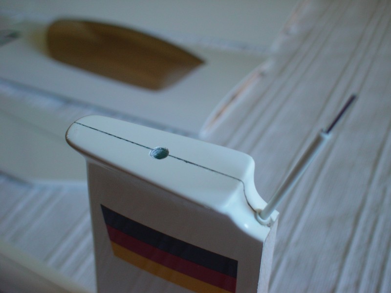 Un truquillo: cuando pegáis con ciano algo por dentro de un fuselaje de fibra, se genera una reacción que además de despedir los conocidos vapores tóxicos, produce calor. A veces es tan alta la temperatura que el acabado exterior de la fibra (gelcoat) se abulta muy ligeramente y queda atiestético. No es nada del otro mundo pero se nota un poco.