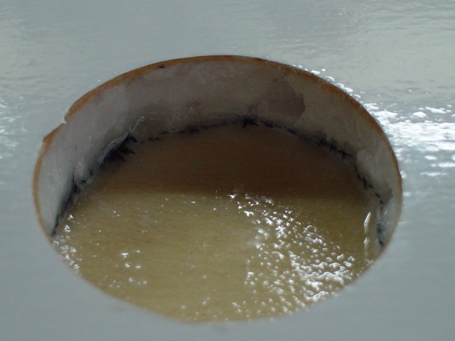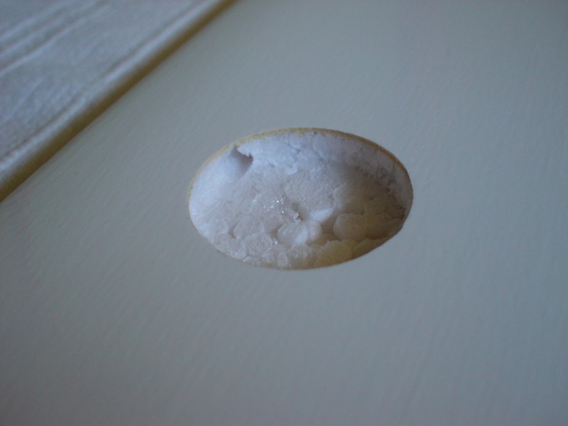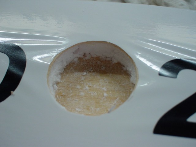 El hueco con el redondel de fibra de vidrio en su sitio e impregnado de resina.