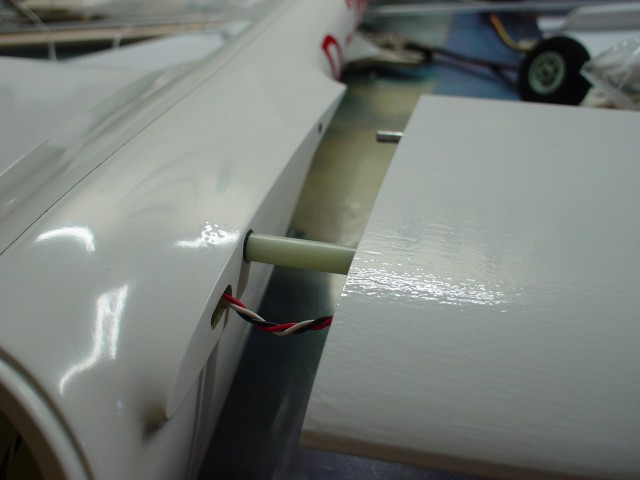 Cada semiala lleva en la raiz unos pines de acero para que al montarlas queden con la incidencia adecuada. Los orificios para pasar los cables del servo no vienen hechos en el fuselaje pero no tienen ninguna complicación teniendo la Dremel a mano.