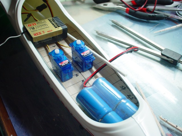 Para mi está todo perfecto excepto el tema de los servos que no termina de convencerme, conociendo lo que exiges a los aviones (no me digas que no :wink: ) yo cambiaría sin duda esos HS-55 rápidamente por unos graupner C261 que son muy pequeños, ligeros, rápidos y te tiran casi de 1,5 kilos.. he tenido un par de 55's que han perdido el dibujo de los piñones después de un uso "burro"...
