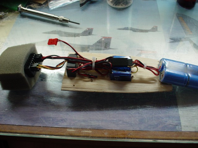 Ahora toca fabricar la bandeja para instalar los servos y el resto de la electrónica así como instalar la transmisión en el timón de dirección.