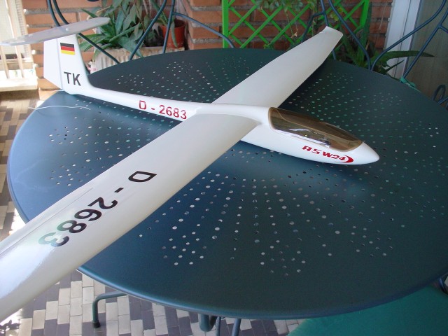 Nada mas abrir el paquete de plástico de burbujas, me encontré con esta pequeña semimaqueta de 1,60 m de envergadura del Schleicher ASW-24. Es un velero monoplaza que se fabricó entre 1987 y 2000 siendo sustituído por el ASW-27 y el ASW-28. Si bien no es el mejor para vuelo en térmica, sus características lo hacen apto para vuelos de larga distancia en los que ha ganado varios campeonatos. La página del fabricante no tiene desperdicio. Schleicher empezó como fabricante del veleros en 1927 y es uno de los mas veteranos y reconocidos en todo el mundo.