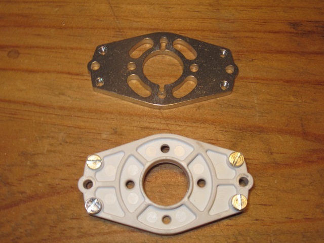 1.- He cambiado la bancada de plástico que traía por la de aluminio del Fun Cub. Le he hecho dos nuevos agujeros a la medida del motor para sujetar este con 4 tornillos.