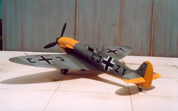 Un Spitfire con el morro simulando al de un Messer G.