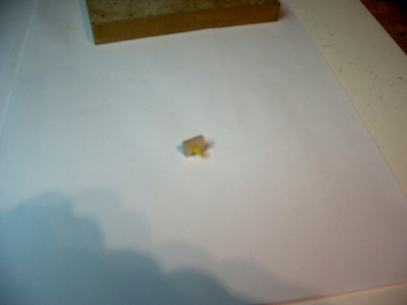 Una vez seca la pintura, rascar suavemente con el xacto para quitar los granos de sal, un poco de marrón oscuro y restregar el marrón con un trapo mojado en aguarrás. La foto es una castaña, pero el resultado es razonablemente bueno, quedando un aspecto rugoso-oxidado muy real.