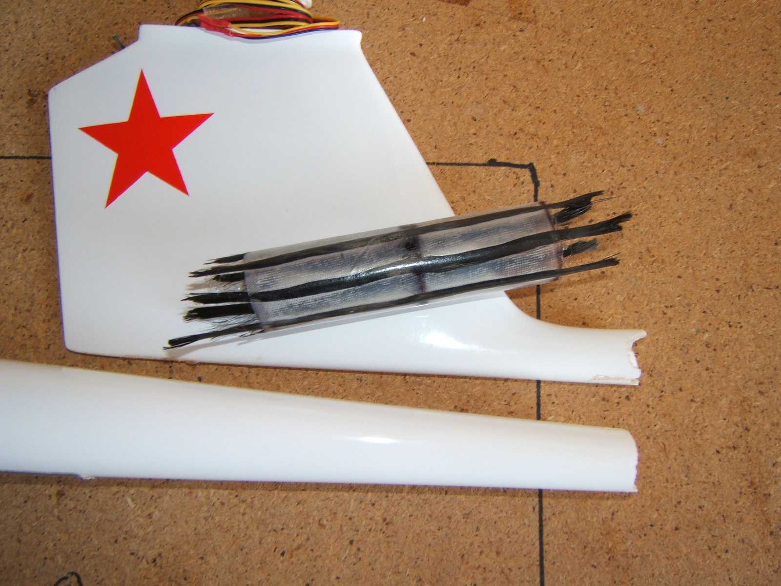 no ha quedado nada mal la reparación, pero para la proxima, a mi lo que me recomendaron es esto: lijar bien con lija muy fina (800-1200) la zona de la fisura, sujetar con ciano de forma que quede recto, para poder trabajar en la zona. se corta un triangulo alargado de fibra, sujetas la punta del triangulo al fuselaje con una gota de ciano, empiezas a dar vueltas al triangulo en torno al fuselaje mientras vas impregnando con epoxi, luego un poco de film de cocina lo enrollas bien tenso, y por ultimo con una goma larga, plana y estrecha, das vueltas bien tensas a todo el conjunto. esperas a que seque y al quitar la goma y el film queda muy lisito, solo necesita un poco de lija y quizá algo de masilla.