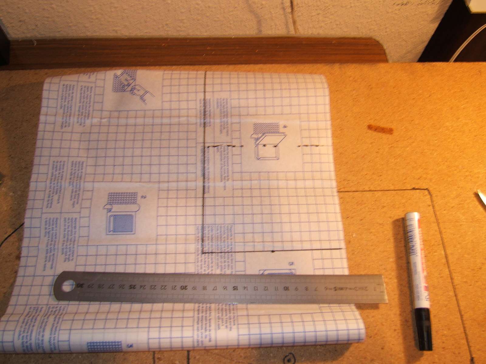 Cortamos dos rectángulo del plástico de forrar en la medida anterior, pero de forma que sobre por los lados (unos 18 cm), quitamos el adhesivo y nos quedamos con el papel encerado.