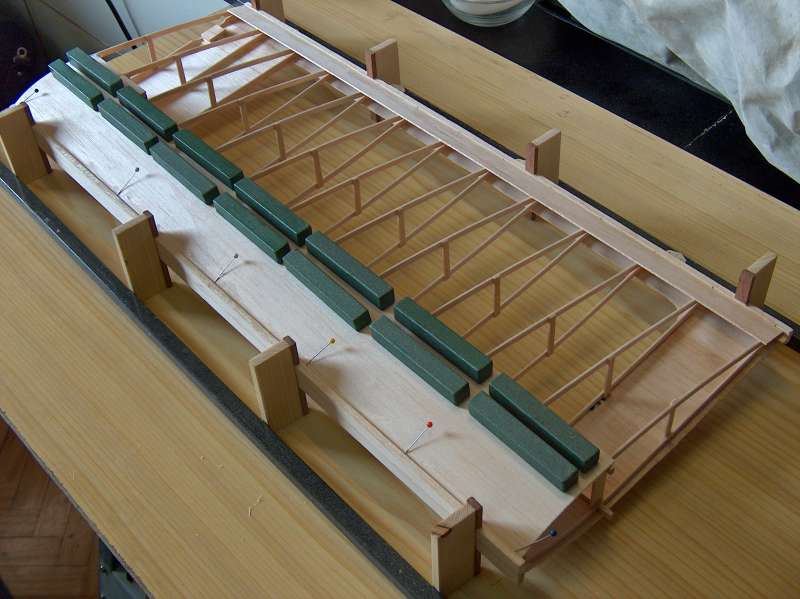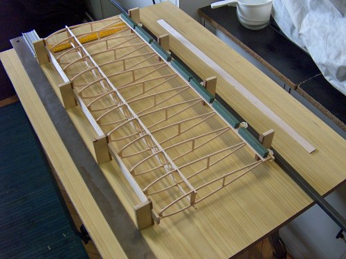 Estoy construyendo unas alas nuevas para el Privateer utilizando el método Lincoln Log de Tom Morris. Por ahora casi todo parecen ventajas: Está quedando muy derecha, parece muy ligera, se aprovecha mucho la balsa y no es demasiado complicado.
