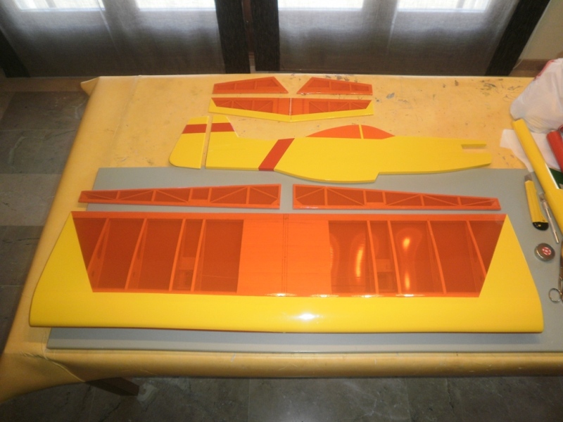 y me decantaria por la pintura en fuselajes y el termoretractil para el ala, pero ...... viendo el 'taller' que tienes y la pringosidad/olor/etc.... del tema barnizado/sellado/pintura