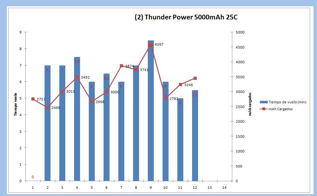 -Al cargar despues de un vuelo, le entran 2300mA, por lo que aprovechamos el 100% la batería.