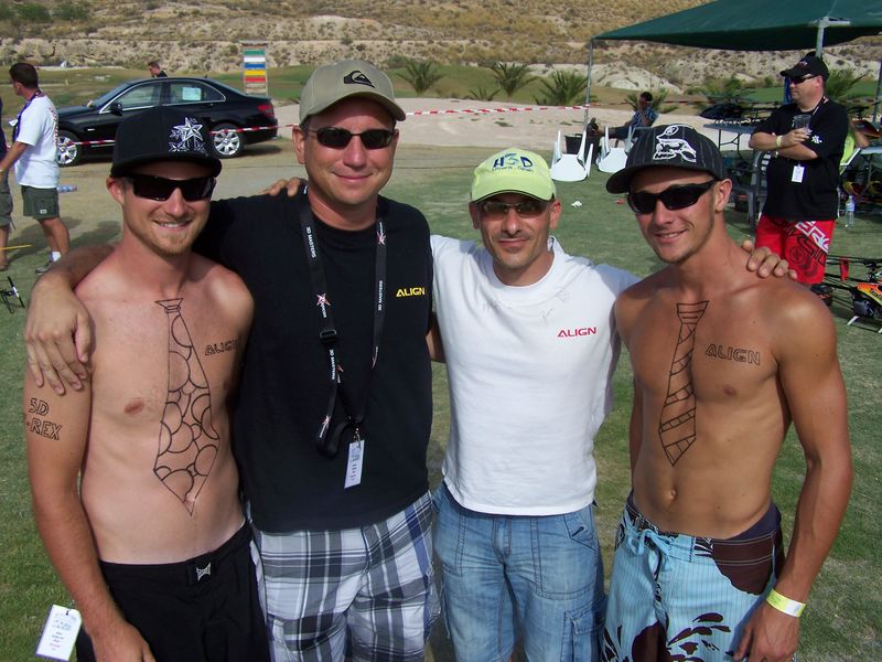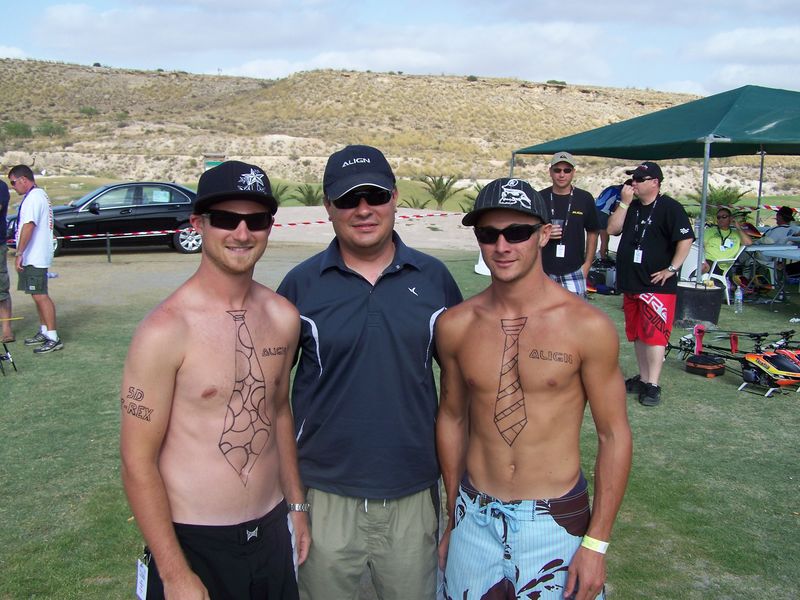 Hay que ser un poco mas generosos con la organizacion. Si, era todo caro, pero es lo que cobran en cualquier chiringuito de por alli (4 euros paque yo por una Crepe en la playa el domingo) El que no quisiera pagarlo se lo traia de fuera sin problemas, usaba el marker o el truco de hacer dos pulseritas de una con una simple tijerita. A su favor hay que decir que alquilar ese terreno el fin de semana costaria pasta, y vete a saber si la pasta de las consumiciones se las llevaria el resort. Por otro lado no hay mas que ver como en Espanya no esta claro quien organizara el evento el año que viene y en Alemania organizo algo parecido Markus Fiehn en el 2008 y nadie lo hace este año. Asi que gracias a los del 3D masters por conseguir hacer el evento cada año de manera estable. Los ingleses lo estan pasando chungo con lo baja que anda la libra y para compensar el gasto extra de entradas y consumiciones el proximo pedido de material se lo haceis a ellos para ahorrar algo de pasta gracias a la conversion de moneda :wink: Tambien hay que agradecer a Centro RC Levante y a Aeromodelo (ademas de los otros patrocinadores guiris) por estar alli presentes y ponernos los dientes largos con comprarnos otro heli.