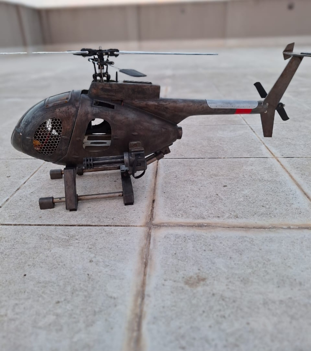 Hola amigos.! Les comparto unas fotos de mi helicoptero md 500 personalizado con una estetica Mad Max.