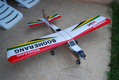 Estoy muy contento de anunciar que ya tengo casi finalizado mi primer ARF, un boomerang 40, con un OS .40 y una modificacion para alerones independientes con dos servos. Solo me quedan algunos ajustes de los mandos y montar la helice. Tambien le he puesto un interruptor con led y conector externo para cargar la bateria sin desmontarla bastante practico.