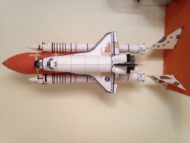 una verdadera pasada el modelo del compañero, mi modelo tambien quiero que desprenda los cohetes auxiliares y caigan con un paracaidas, aunque en los primeros lanzamientos solo usaria un motor para el tanque e.t por cierto el mio es en escala 1:144