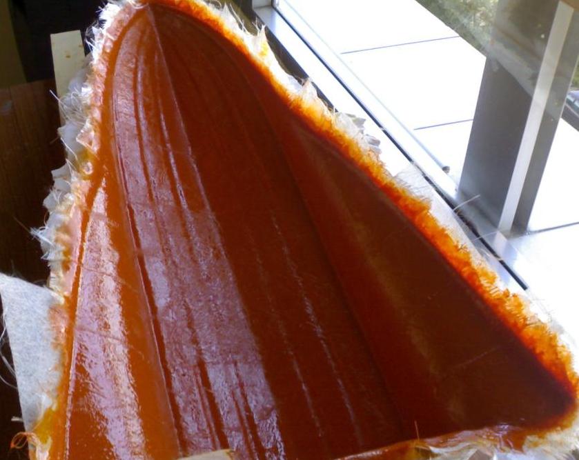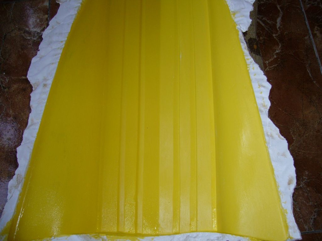 Bueno amigos empece la odisea que no se como quedara por la poca paciencia que tengo os pongo una foto y mañana cuando la saque del molde. ¡Que verguenza! pero si no se intenta no se sabe le puse el velo de 30gr,dos capas de 100gr tinte naranja y un refuerzo donde supuestamente va la bancada del motor termico ya que electricos tengo unos cuantos estos consejos de como ir realizandolo se lo debo a dos grandes foreros que a uno ya conozco en persona y el otro lo conocere pronto.