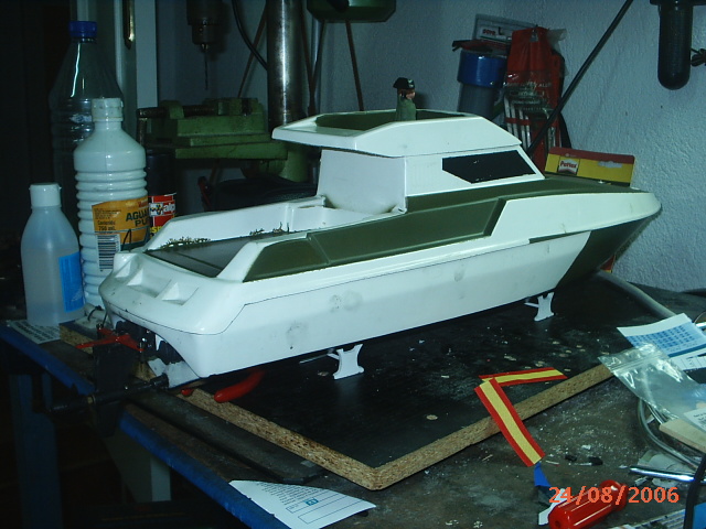 EL CASCO LO COMPRÉ (70 €) EN UN ASTILLERO DE ALMERÍA, Y VIENE MUY FINO Y EN TRES PIEZAS, CASCO+CUBIERTA+FLYBRIGE.