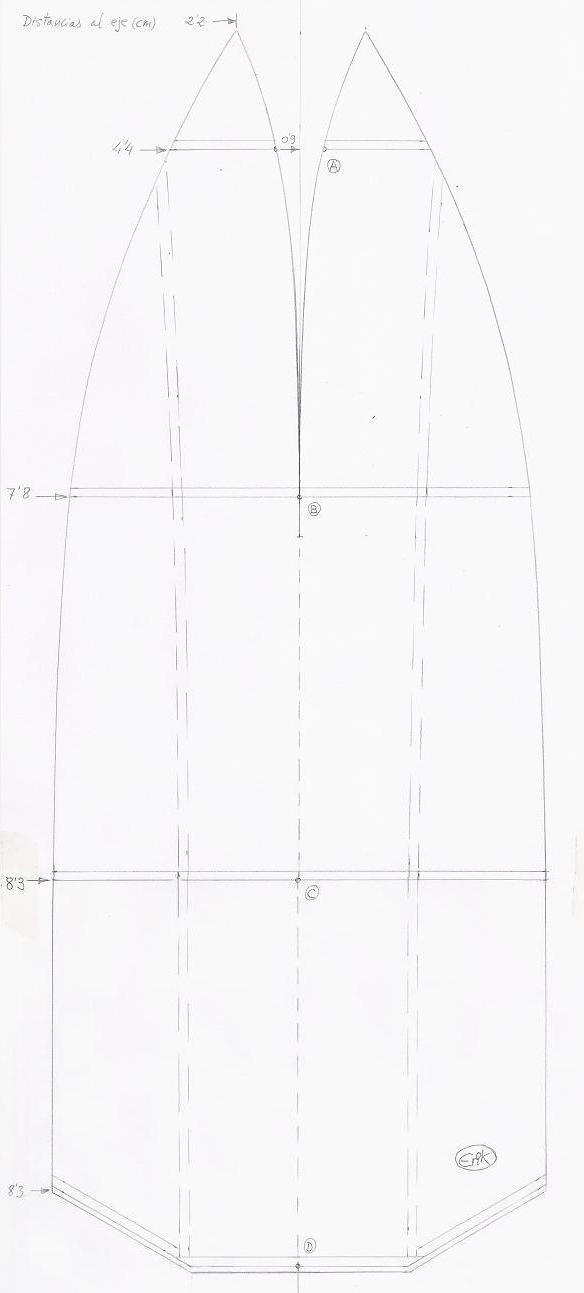 Las otras dos cuadernas las sacas una vez puestas las dos anteriores, según pida el casco.