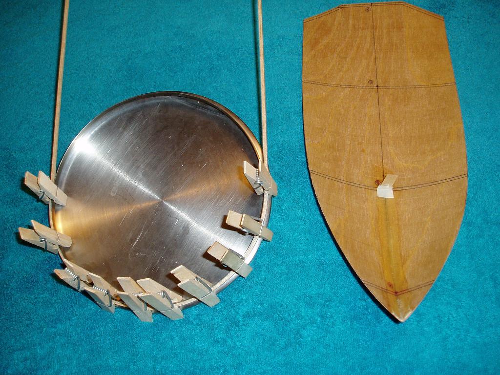 Para el sistema del bacalao, es imprescindible usar dos materiales diferentes: para el casco el material ha de ser flexible (contrachapado de 0,6 mm), pero las cuadernas han de ser rígidas (balsa de 3 mm).