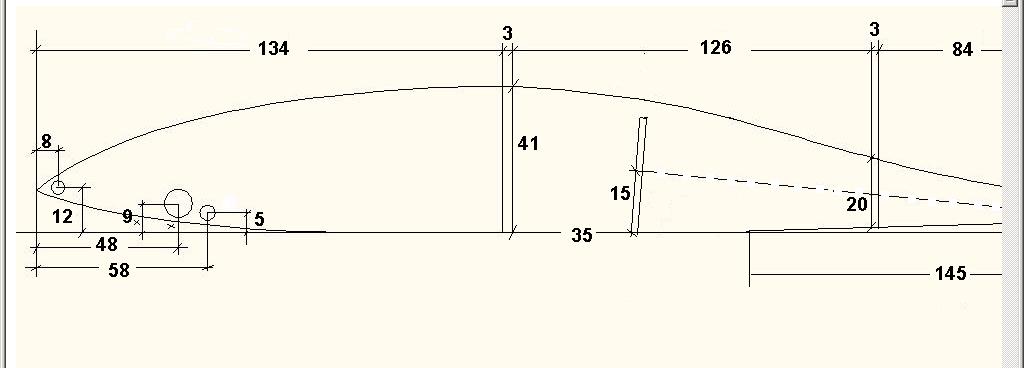 turn-fin, necesario para la correcta navegación del hydro pues es el punto respecto al cual gira: me gusta que sea grande, robusto y que su borde de salida casi coincida con el centro de gravedad del modelo.