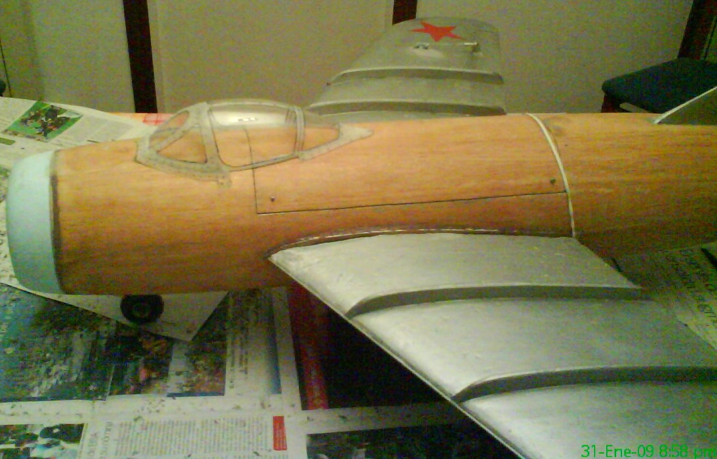 Buenas seguimos con los avances del Mig-15, os pongo un pequeño video donde se ve colocado los tubos (bayonetas)que sirve de alojamiento a las varillas de carbono de las alas y como digo en el mismo video no hace falta fijar el ala , se aguanta sin salirse por que al tener varias varillas siempre hay una que entra dura y esta es la que sujeta el ala, en el mismo video se ve el 3º Mig-29 con nueva cúpula y pintura de camuflaje, espero que os guste