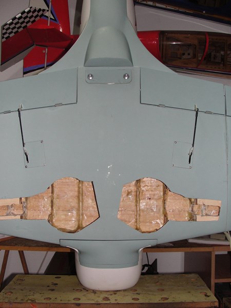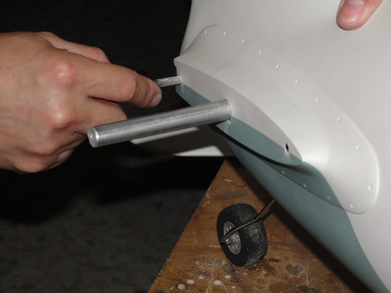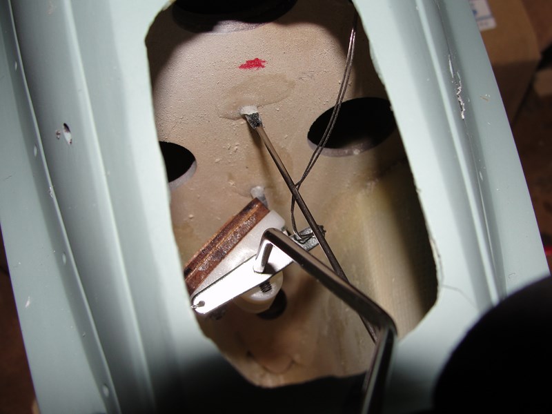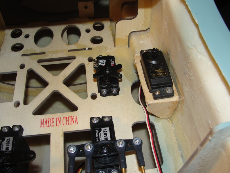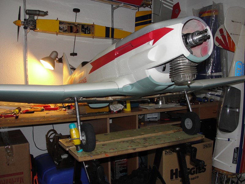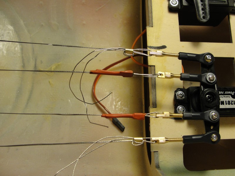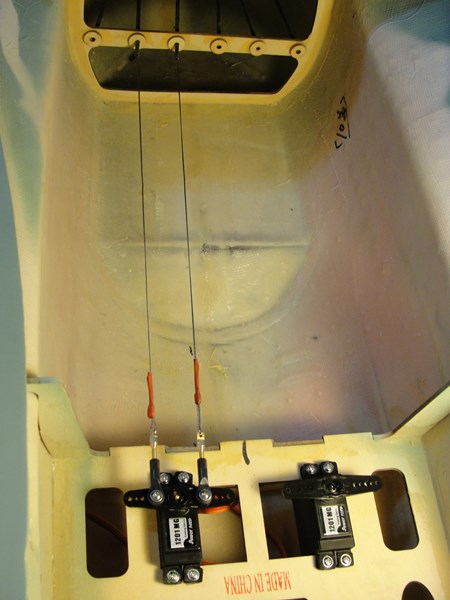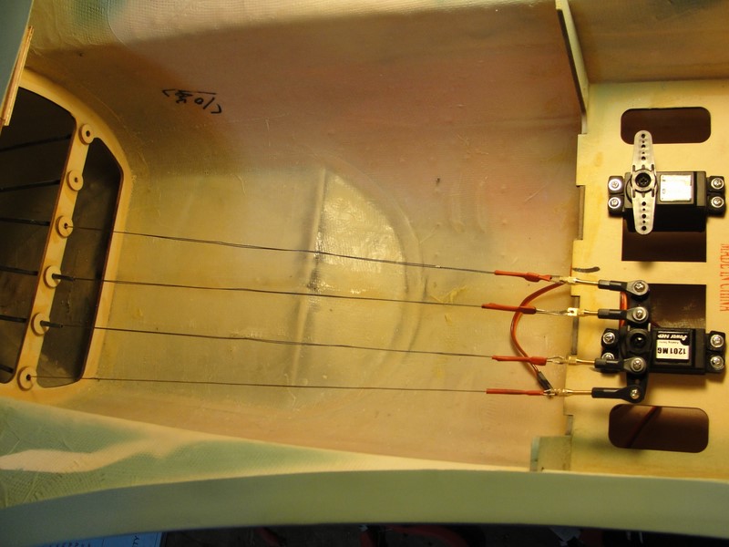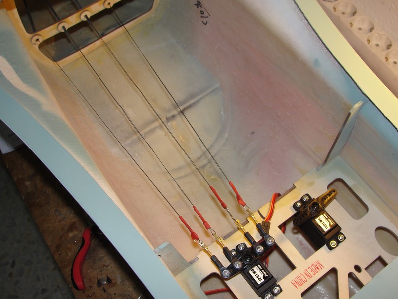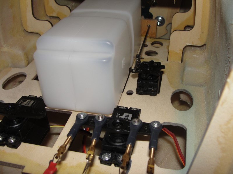 Para el starter he tenido que pensar un poco mas, en principio, en mis otros aviones tengo un reenvio de algun tipo que o bien acciono desde el frontal aprovechando los huecos de los carenados, o bien on un reenvio desde algun lateral del fuselaje.