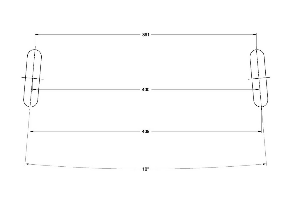 He supuesto que la distancia entre patas es de 400mm, pero eso es indiferente, lo que debes ver es la diferencia entre las cotas superior (391mm) e inferior (409mm), o sea 18mm.