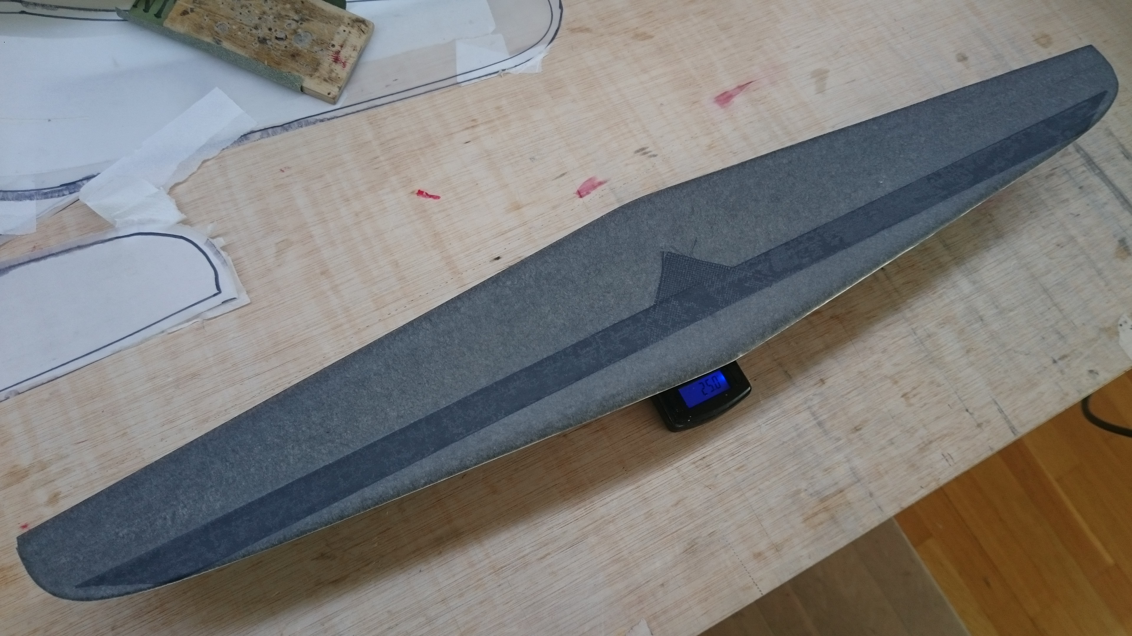 Magnífico trabajo el peso es muy bueno, la decoración me gusta mucho que es vinilo o pintado, yo las cuando hice unas alas pinte sobre el mylar queda bien pero no perfecto, tendré que probar tu sistema te ha quedado de lujo enhorabuena buena, tengo ganas de saber cómo se comporta este perfil respecto a los ag del supra.