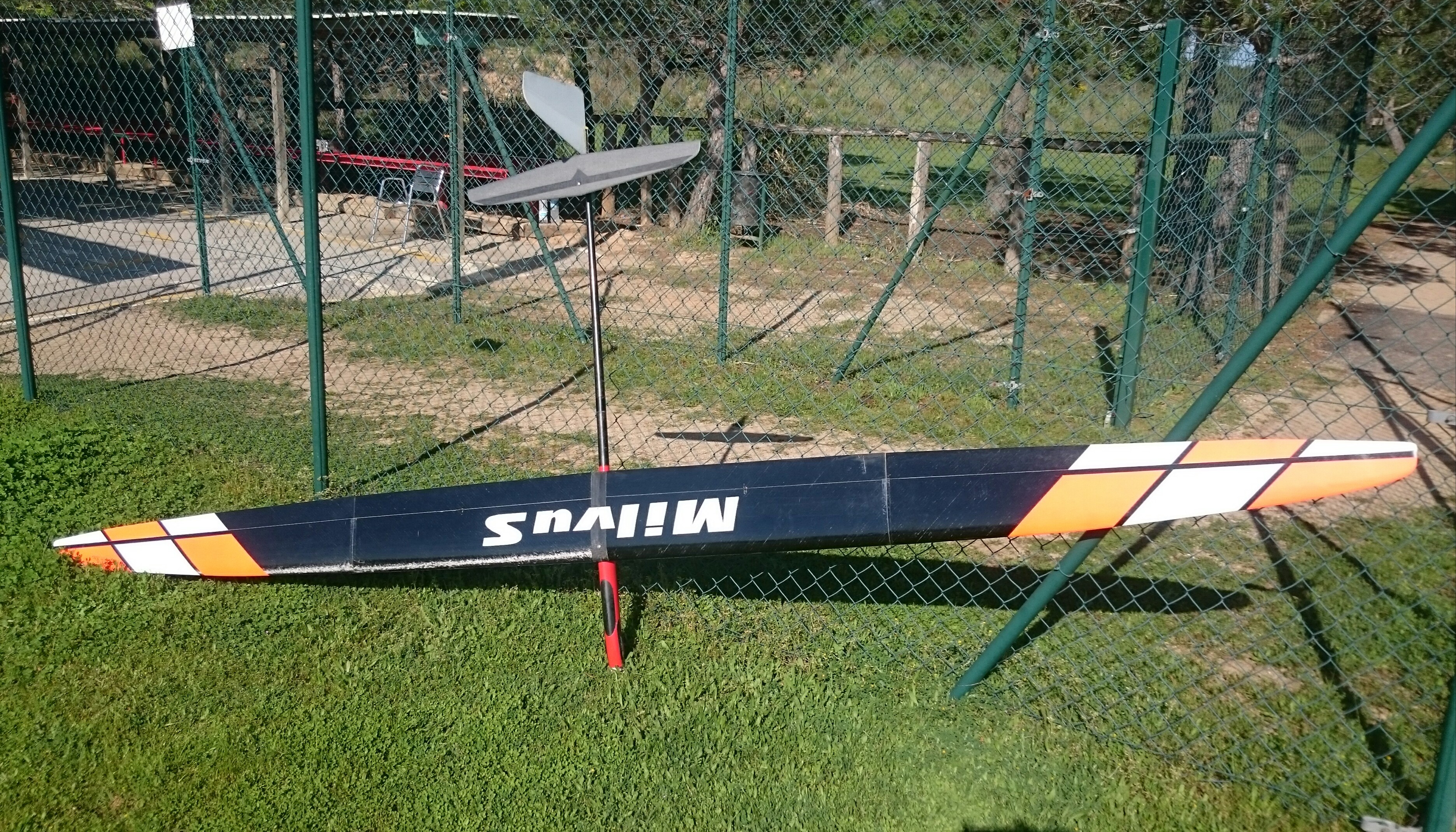 Y para acabar de decidirme a mejorar la transmisión, el Milvus tiene 384 cm de envergadura, y simplemente me da respeto confiar el mando de profundidad a un muelle.