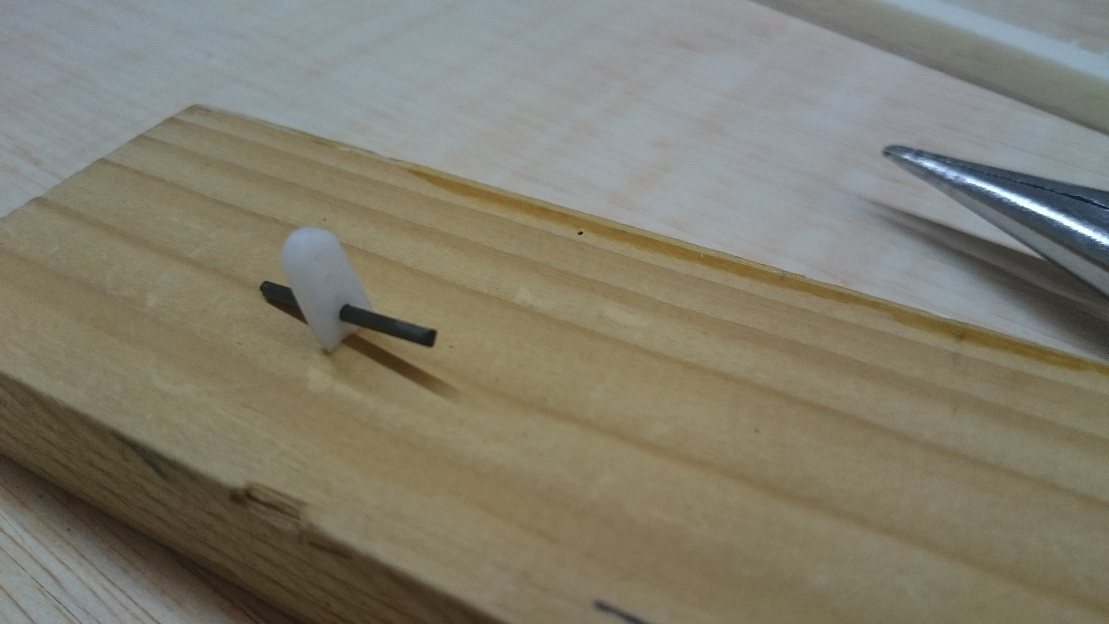 Un brazo de servo y un trozo de varilla, que con un corte de cuter y un poco de epoxi se ponen en su sitio.