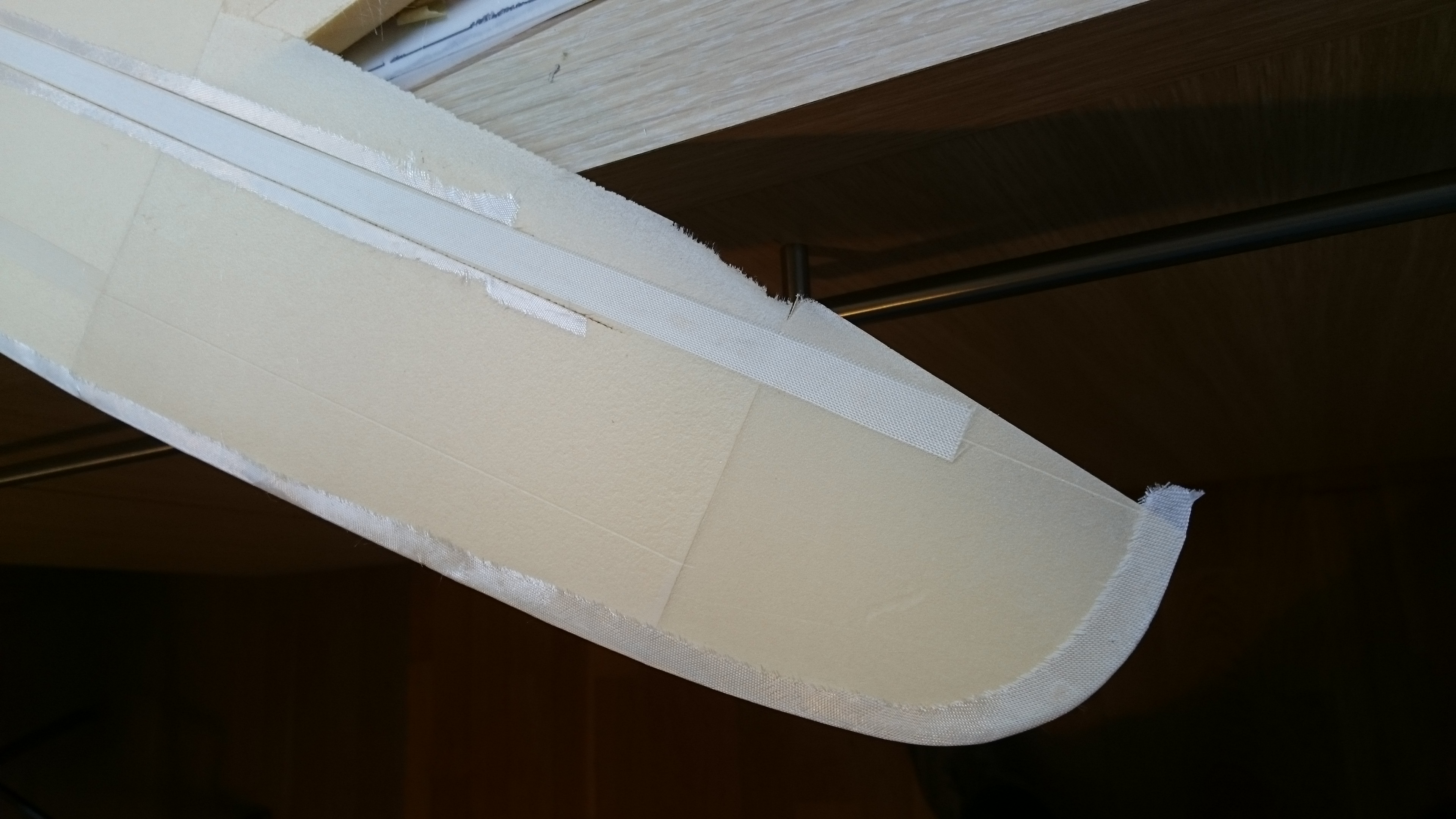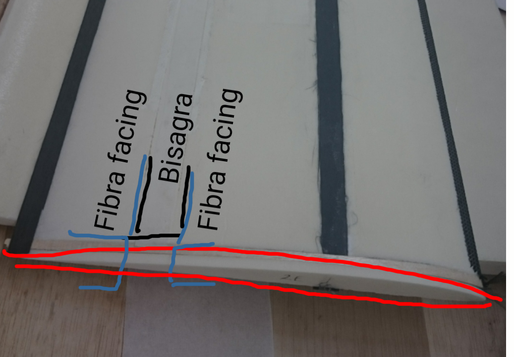 El objetivo es cerrar con fibra el nucleo del ala y el aleron/flap justo por la zona de la bisagra para conseguir una mayor rigidez sobretodo de las partes mobiles.
