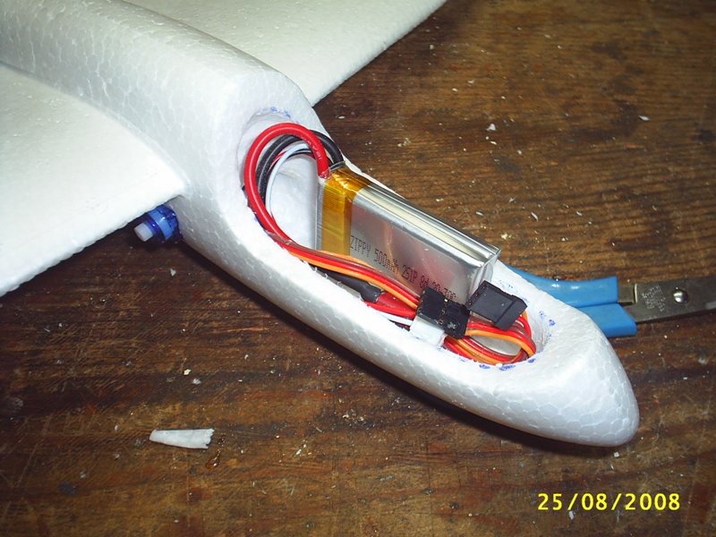 La bateria es muy tocha, pero entra bien y no afecta al CG os lo aseguro
