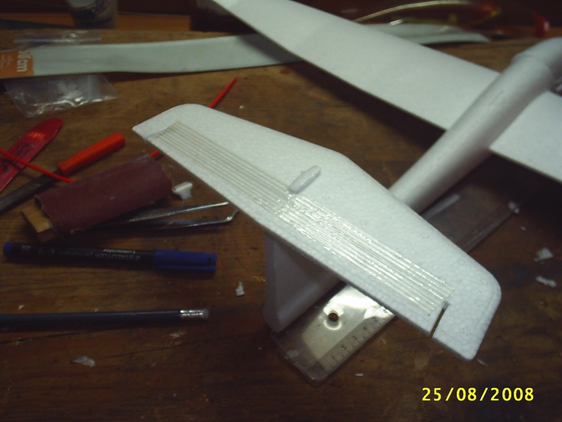 Proximamente pondre mas fotos, estoy teniendo problemillas cn la cola y no lo puedo terminar. Por cierto, ¿que deflexiones son las recomendadas para este avion?