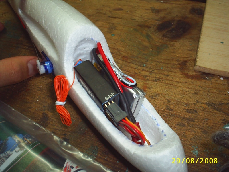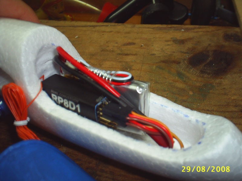 Batt y receptro montados. Repito que aunque no lo parezca, el CG esta en su sitio.
