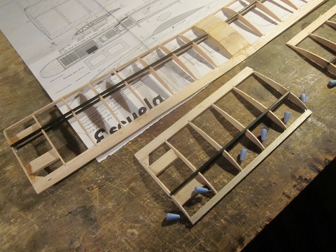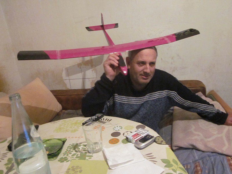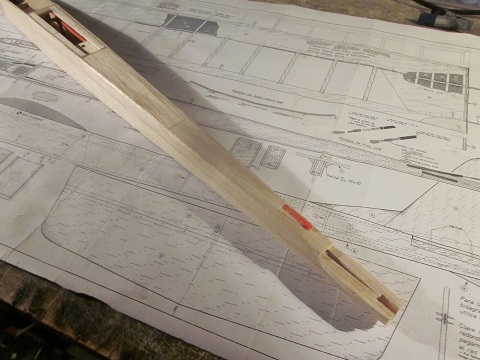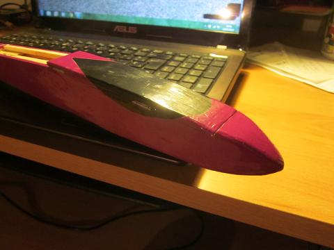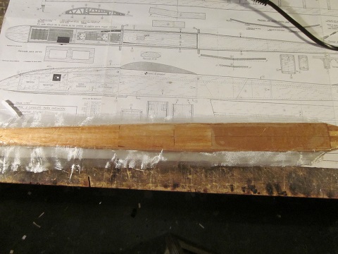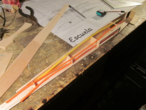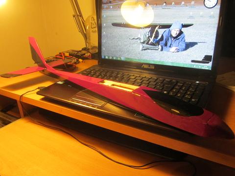Pero bueno... Las alas la tengo terminadas a falta de entelar la parte de arriba entera, y unas cositas en el fuselaje en cuanto este terminado el tema de la fibra para reforzar la panza que tiene. Tambien tuve que hacer una pequeña modificacion que no me esperaba mientras estaba con la construccion, acabando con añadir 4mm a la anchura del fuselaje en la parte delantera para hacer sitio mas que nada para la bateria (que cabia dentro "a leches", pero no con las soldaduras). Juan parece bastante convencido que volara... pero ya veremos si es verdad. Lastima que la prueba final, lo que es su bautizo al aire no lo puedo hacer ya que me faltan los servos (ya que tienen que ser unos bastante especificos por el tema de tamaño), pero por lo menos el avion en si estara listo...