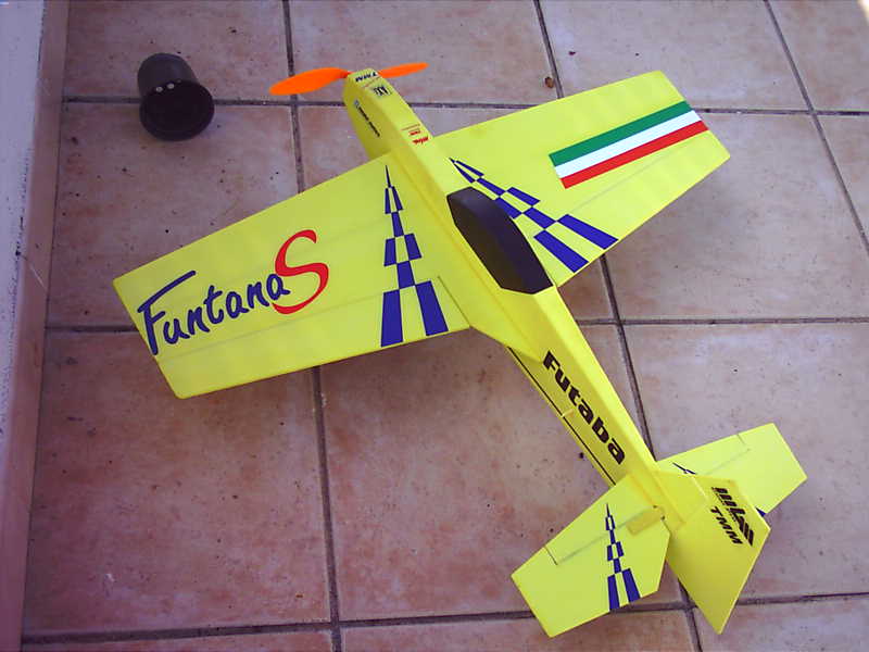 Bueno pues despues de tener las piezas cortadas y guardadas durante tres meses, la semana pasada me decidí a montarlo y este es el resultado, ya lo he probado en vuelo y va fantastico, no tiene vicios raros y con un axi 2208/34 y 3 lipos va que se las pela, hace todo lo que quieras y más, lo he pintado parecido a su hermano mayor el Funtana 90, a ver si se anima el grande que también lleva tres meses guardado esperando un motor