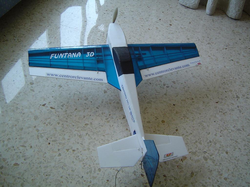 Mide 1,10m de envergadura , esta construido en balsa y deprom y tiene un peso en orden de vuelo de 695gr, y tiene bayoneta ( un tubo de cola de un helicoptero t-rex)
