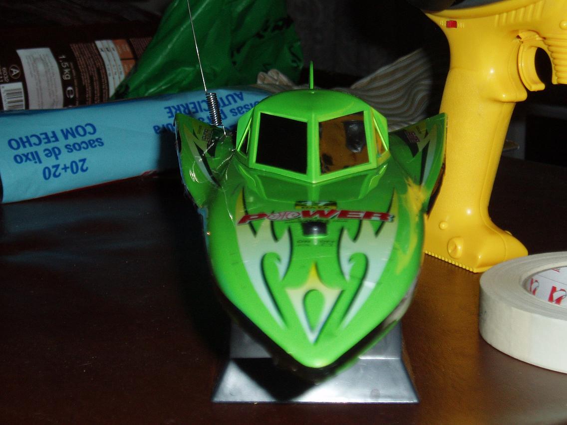 Hola a todos. Ayer estuve en un almacen de estos chinos de todo a 100 y me encontre, entre otras de gran tamaño, esta lancha que apenas tiene 25 cm de eslora, y al modico precio de 18 euros. La he probado en dique seco y va de lujo. Aqui os dejo unas fotillos a ver que opinais.