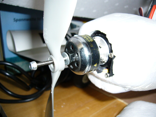 Le dado un poco de caña y em ha despegado la bancada como tira el jodio, tanto que ha doblao el eje, y la helice esta centrada aparentemente (a ojímetro).