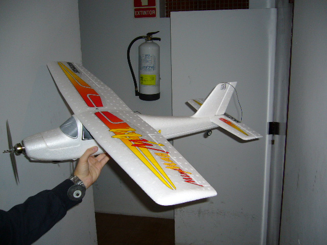 Pues yo al mio despues de un aporrizaje por entrada en perdida le he montado (mientras espero que me llegue este brushless http://www.aarchobby.com/shop/index.php ... cts_id=812 ) un motor tipo 480 de 8.4V y una master airscrew de 8*4 ( tengo preparada una 8*6 para el brushless jejeje) y he de decir que levanta como un tiro y que durante todo el vuelo lo llevo a menos de la mitad de gas y van muy bien la verdad,supongo que con el brushless ira muchisimo mejor. La bateria que monto es una 11.1V y 1900mAh con 13c de descarga, eso si, le he puesto unas ruedas de plastico que pensan unos 16gr cada una y ahora si va el centro de gravedad fino ( eso sumandole que el 480 pesa 20gr mas que el 400). Conclusion, este avion planea muy bien ( lo despego y aterrizo con los alerones deflectados hacia abajo (aerofrenos) y se nota mucho el efecto), si se le programan los diferenciales en los alerones se pueden dar giros bastante cerrados sin entrar en perdida ( excepto cuando te ciega el sol como a mi :oops: ) y si hay vientecillo se puede planear bastante bien durante bastante rato, lo cual te hace dificil calcular cuanto tiempo de lipo te queda... y los avisadores no se ven muy bien en la calle de dia. Lo que no he hecho aun son figuras pero claro aun soy muy novato en el tema jejeje.