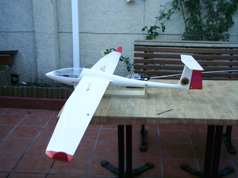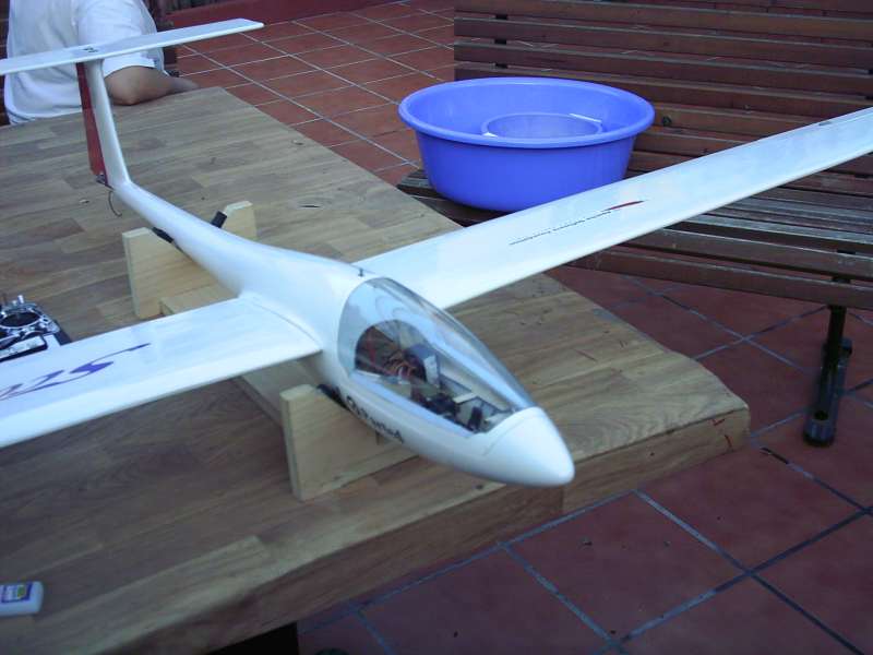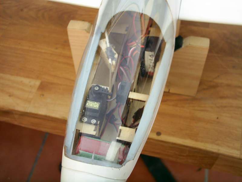 El fuselaje está fabricado en fibra de vidrio y el estabilizador en celosía de balsa. Las transmisiones son cable de bici pero mejor los tiras y le pones fundas más rígidas y alma de acero para que vaya bien. La bancada de los servos viene puesta y el fuselaje viene reforzado con dos cuadernas, una por delante y otra por detrás de la bayoneta y....... etc. etc. etc. .......