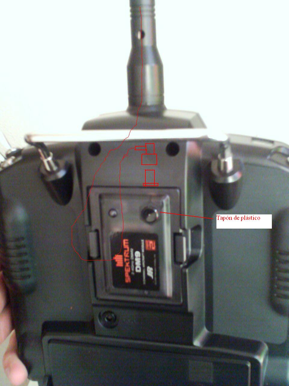 2º Con el mismo cable que tiene el moduo que es gris, sacar el conector por el hueco de la antena, meterle un casquillo y sujetarla y comprar una antena wifi y enroscarla.
