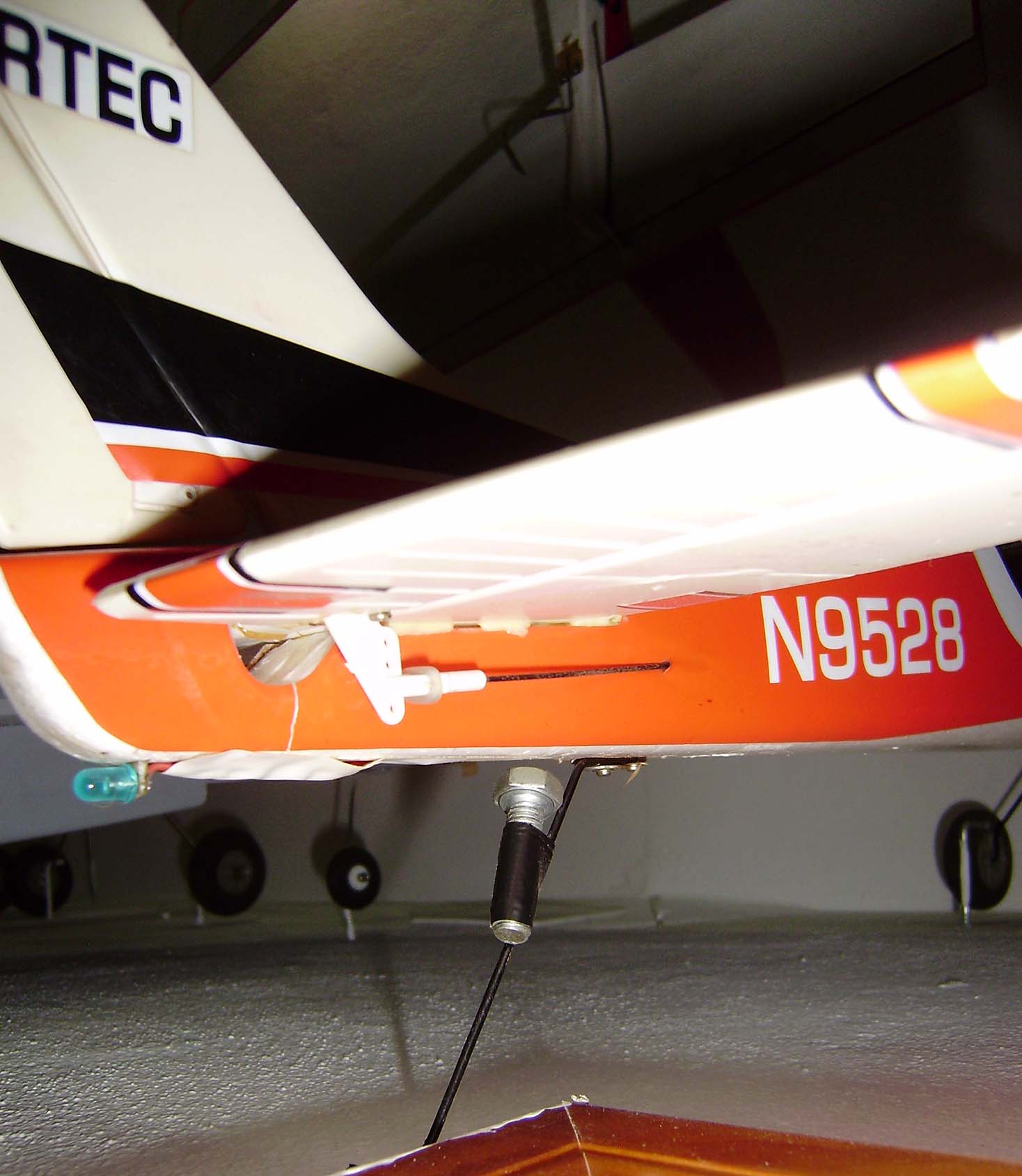 Problema: El avion viene de serie con una rueda direccionable, unida con varilla al servo del timon de direccion, viene con un sistema de prisionero de plástico que va atornillado al bastidor del morro donde se ancla el motor, en el primer vuelo que hice, directamente se cayó y tuve que aporrizar obligatoriamente, y en el segundo, se giró solo quedandose a 90º respecto a la direccion de aterrizaje, y otra vez se estrelló, asi que ACONSEJO ENCARECIDAMENTE que los usuarios trabajen sobre esto para reforzarlo-mejorarlo o modificarlo como hice yo.