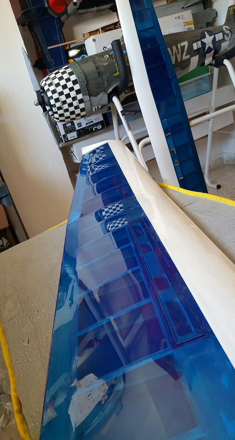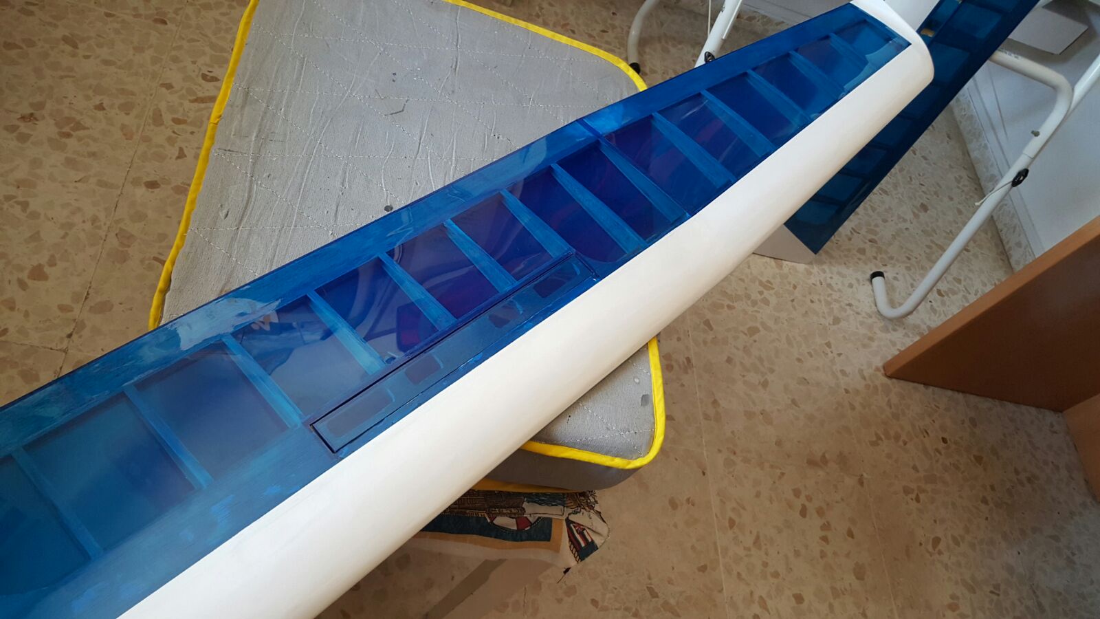 8) Gracias por subir las fotos amigo Juan.... pues sí dentro de poco empezamos con la instalación final. El fuselaje tiene ya tres manos de Pacer finishing resin diluidas con lijados intermedios y a falta de llevarlo al taller de pintura. Mientras tanto repasando el recubrimiento de las semialas y grupo de cola así como haciendo una actualización al sistema de aerofrenos. Las antiguas hojas las vamos a desechar y construir unas nuevas algo más ligeras y aunque mantendremos como expuse el cordaje del sistema original haremos algo de cierre con imanes o similar, me da algo de tirria el no haber instalado un servo en cada aerofreno pero tendría que haber " desplumado " parte de, al menos el intradós y hacer una carnicería en la zona del enchapado, además de unos nuevos calados en los karmans.... no creo que compense, aunque si hubiera partido de cero como es el caso del amigo Agustín Martínez de mi club, que a la par está construyendo otro Aquila así lo ha hecho. También he retirado los antiguos logos que los haré nuevos... aquí estamos... piano piano se va lontano....el amigo Bob nos envía de los EE.UU. unos certificados para los asistentes al Katie Martin y a ver si podemos hacer unas camisetas dedicadas también... en fin... que se hace lo que se puede...wen finde amigos todos....