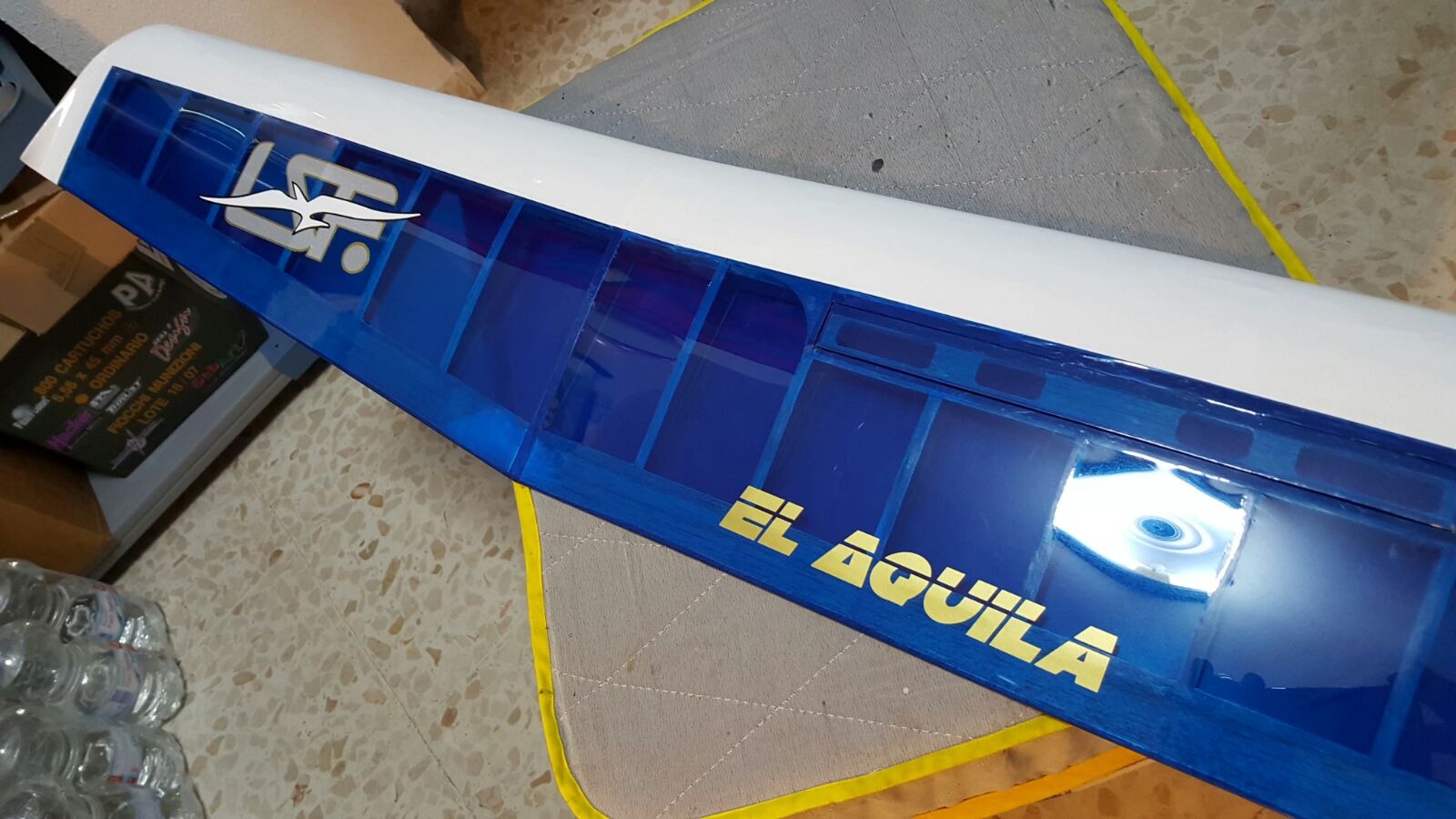 8) Hola amigos....wenas tardes.. :) :) :) :) en primer lugar agradecer nuevamente al weno del amigo Juan que me permita compartir su hilo y subir las fotografías que le voy enviando de vez en cuando sobre los progresos con el Aquila eléctrico... la verdad es que prácticamente todos los componentes están terminados y dando los últimos retoques a la decoración a la espera del ensamblaje final una vez que esté terminado el trabajo de pintura en el fuselaje. Como creo haber expuesto con anterioridad, en mi club actualmente estamos haciendo dos Aquilas a la vez e igualmente están igual de avanzados... un servidor se ha limitado a un nuevo fuselaje convenientemente modificado para propulsión eléctrica y un repasito al entelado de las semialas, estabilizadores y timón, actualización de los aerofrenos y la decoración y poco más; en cambio el amigo Agustín Martínez ; un veterano aeromodelista, constructor y piloto de aviación real amateur durante el mismo tiempo ha construido por planos otro hermoso Aquila idéntico prácticamente al de un servidor, aunque eso sí, aprovechando que puede dedicarle muchas mas horas diarias que un servidor, puesto que ya disfruta de su merecida jubilación...., con lo que dentro de muy poquito, si Dios quiere... habrá un estreno y un reestreno a la vez... con el conveniente reportaje fotográfico y videos que procedan....