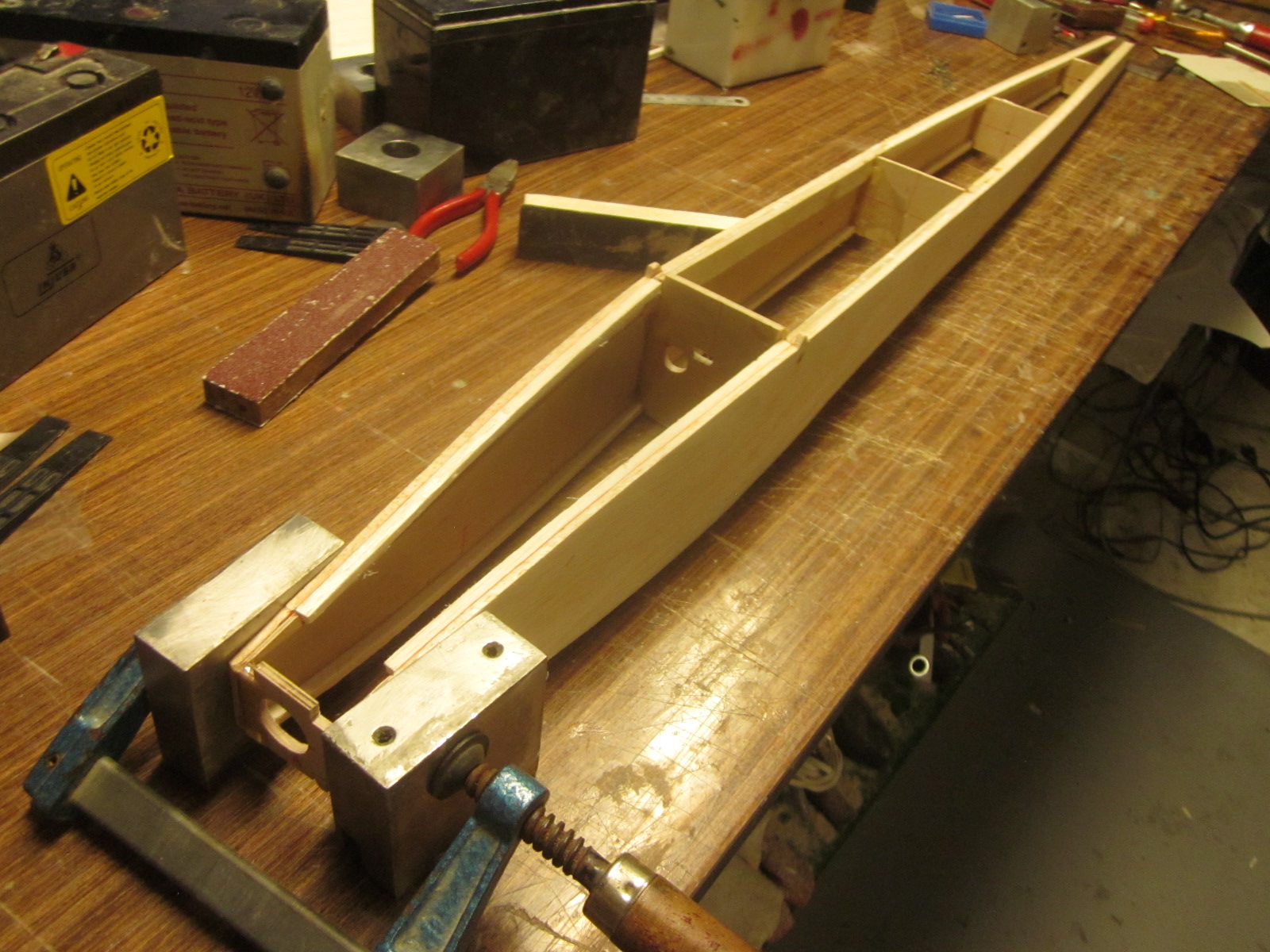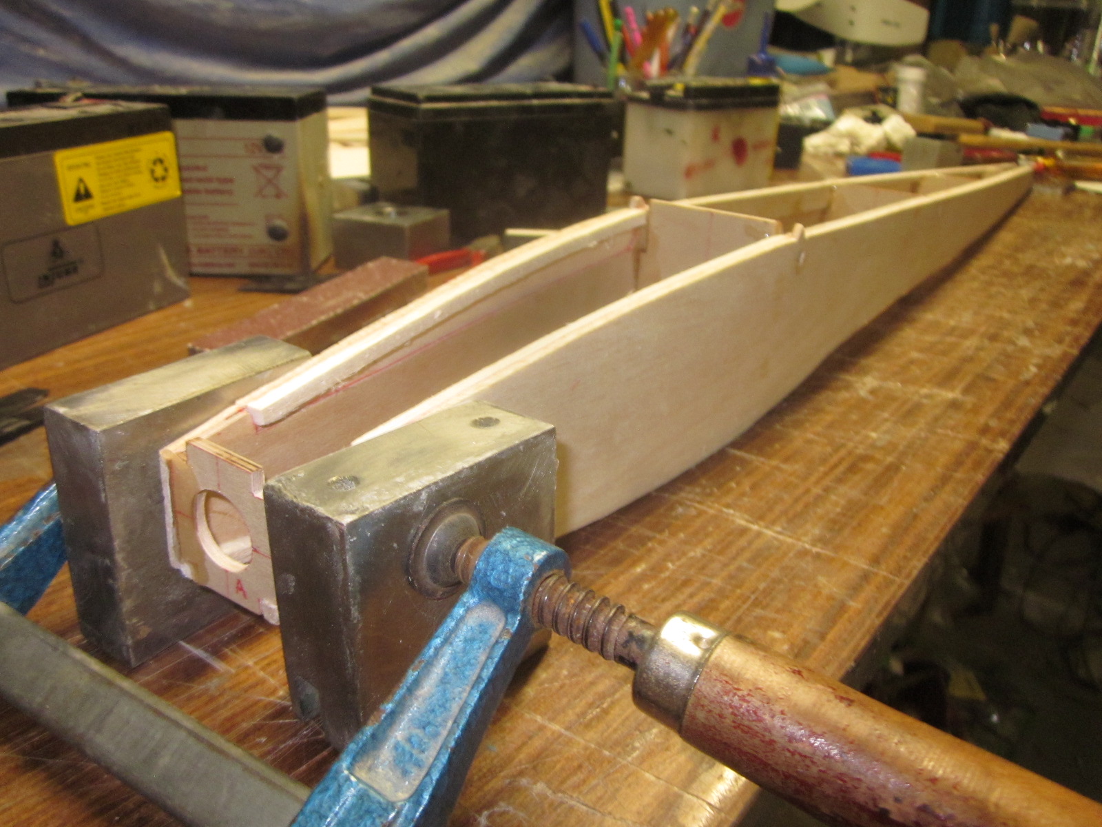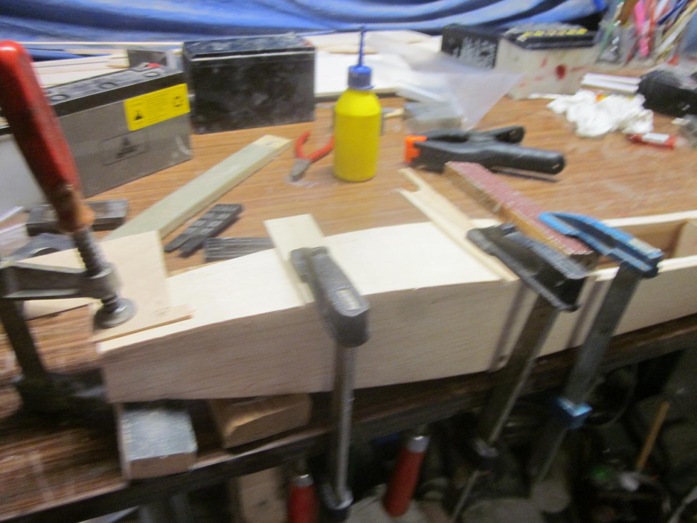 En estos momentos acabo de encolar todas la cuadernas restantes, A - D - y - E ...cuando quede seco, quedará listo para irle