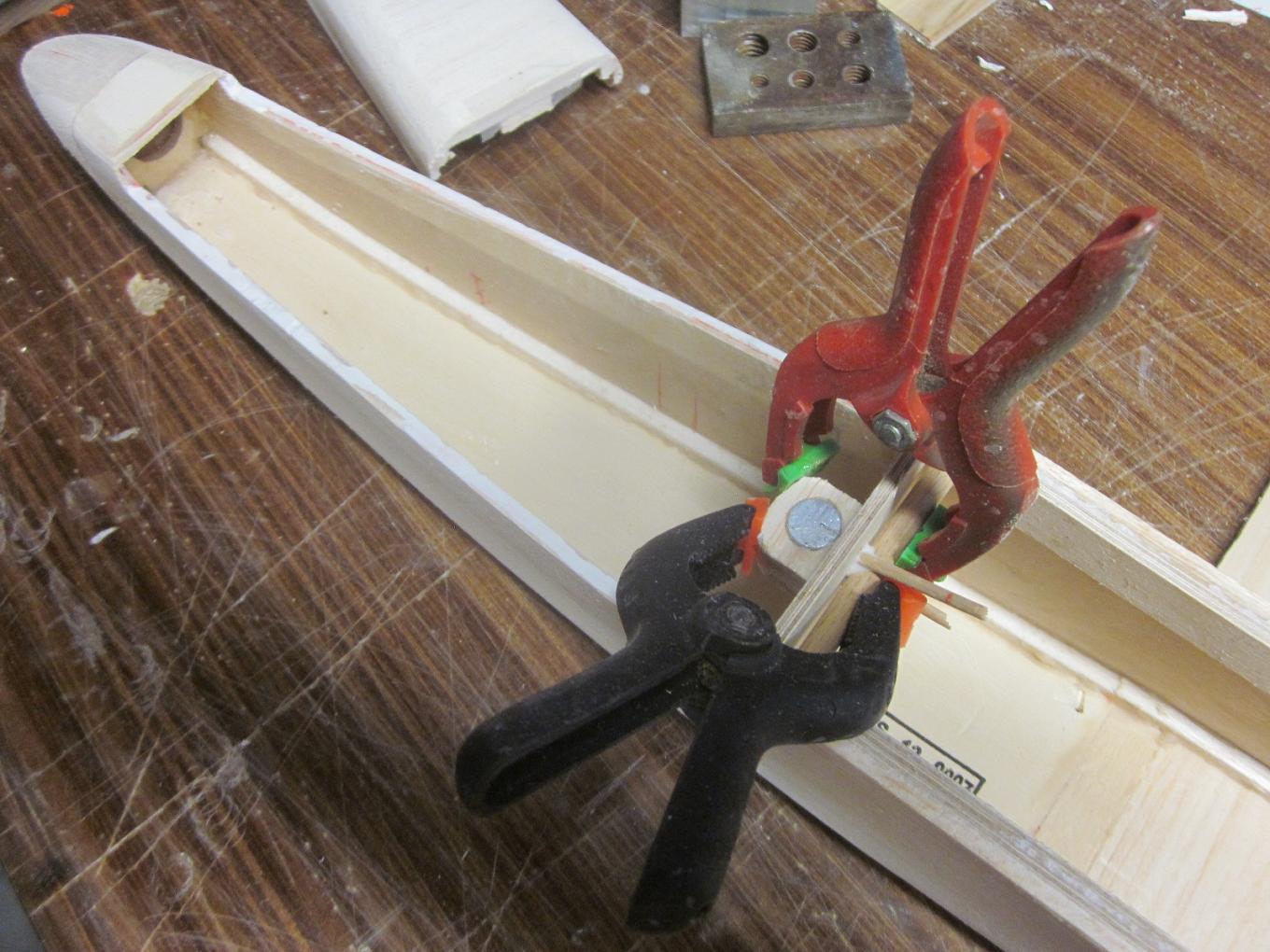 En el tuyo al dejar espacio en el taco del morro y la primera cuaderna te permitirá llenarlo de plomo pero quizás te pida más, trata que el espacio que queda entre la batería y la primera cuaderna no lo ocupes con nada, ahí podrás poner más plomo si el avión te lo pide.