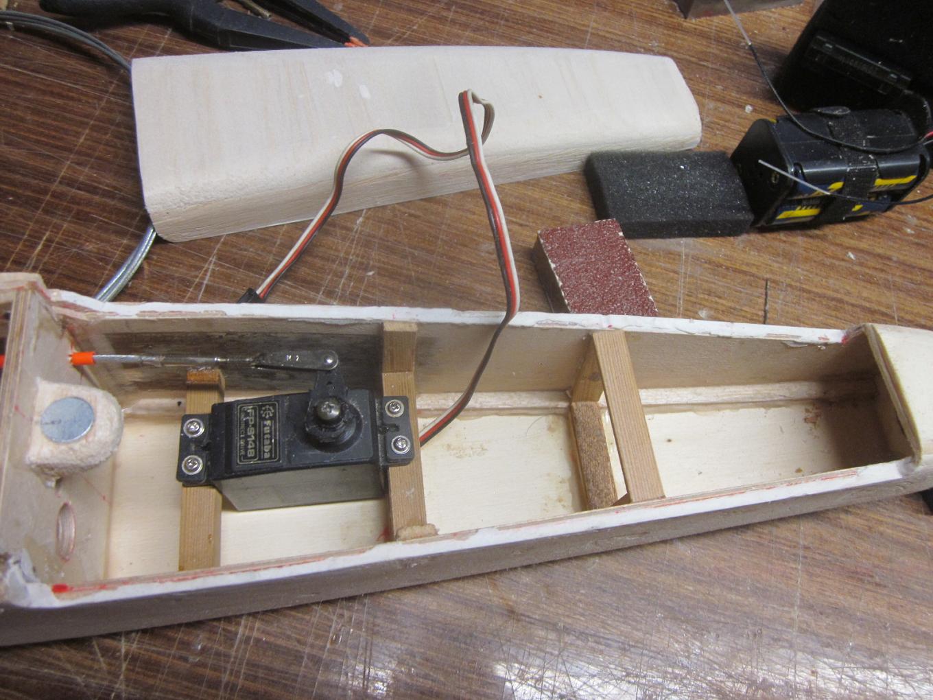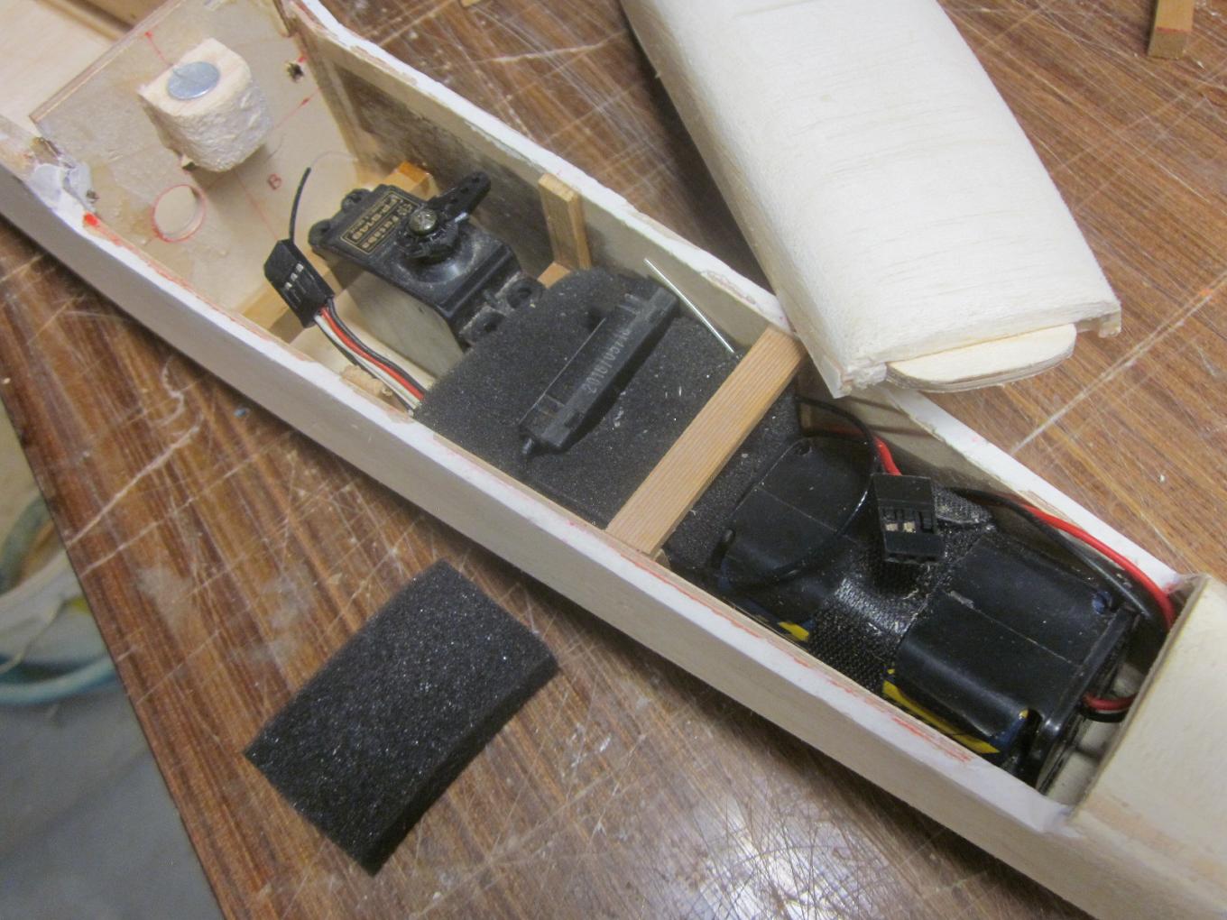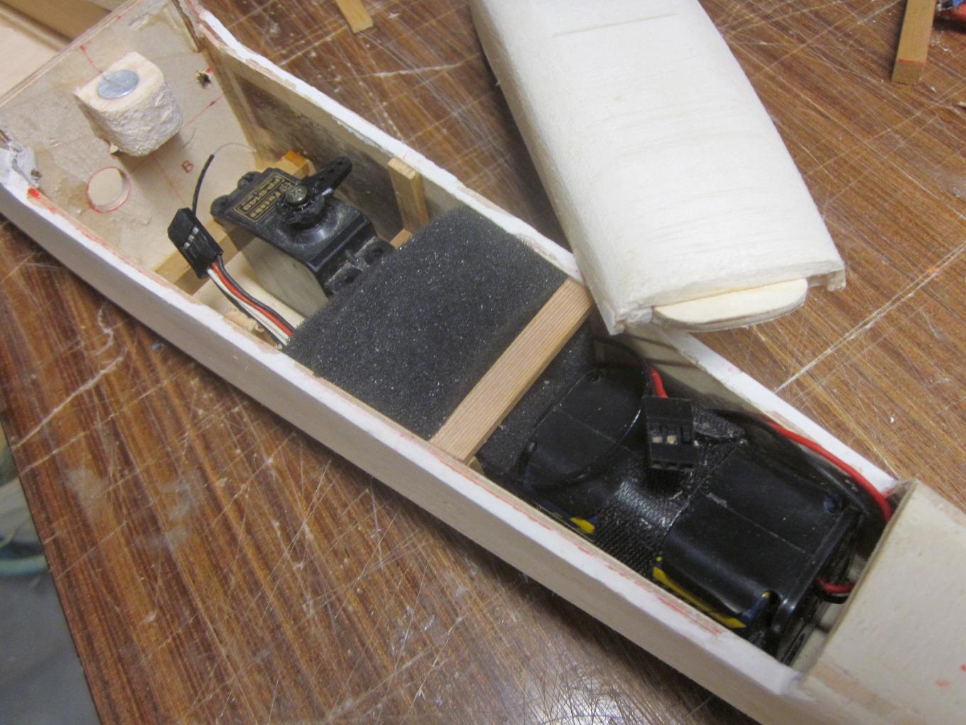 Juan, se vé bien y la distribución de la electrónica te quedó casi como el original. En el original la batería se podía poner vertical u horizontal, si se ponía vertical había que poner más plomo, toma en cuenta que el fuselaje era hueco hasta la punta.
