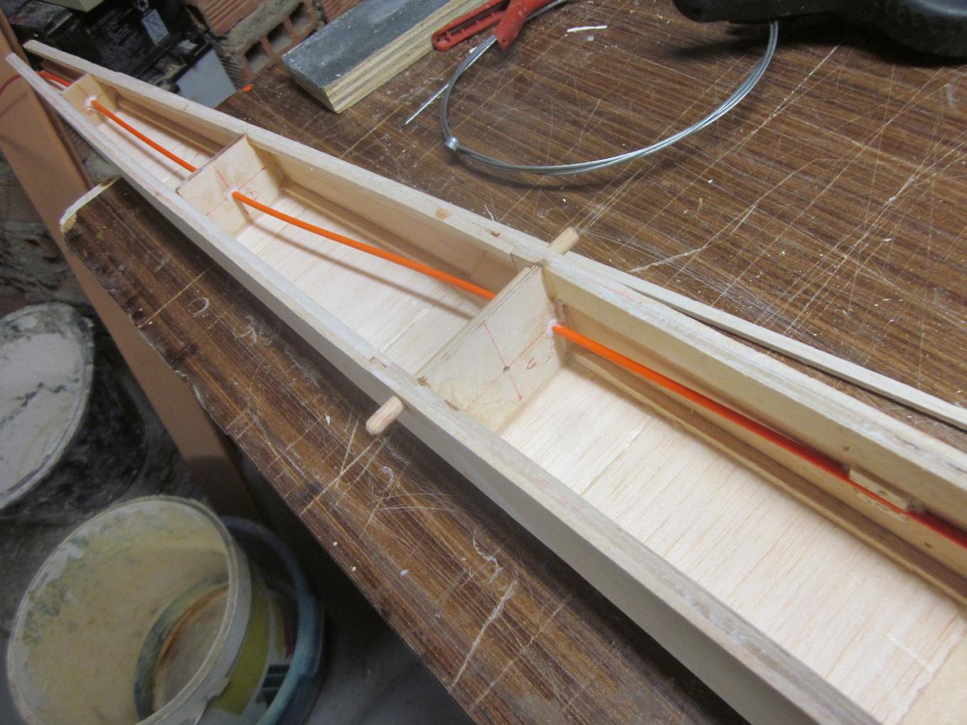 TIO JUAN, si quieres probar 'alternativas' al alambre de acero trenzado ( bastante mas ligeras ... pues el problema es el gran momento de cola que tienen los veleros ) es con el hilo de nylon de las desbrozadoras , suele ser de 2,5 a 3mm de diametro, bastante rigido y si encuentras una funda ( yo suelo buscar tubo de nylon de instalacioes de aire comprimido ) que tenga un diametro interno que se le corresponda tendras mandos bastante mas ligeritos, economicos y ahorraras en 'comprar plomo' para meter en el morro :mrgreen: :mrgreen: